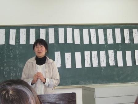 在理论知识讲解结束后,老师给了同学三个主题,并让大家自由发挥。对于同学们的作品,老师一一仔细审阅,并给与了真诚表扬和建议。不少同学一改往日的羞涩,落落大方地上台解释创作来源。整个现场气氛热烈,本次交流不仅让在场员工掌握到俳句创作基本技巧,同时也加深了本校与福德公司的友谊,加强了中日普通群众彼此间的认识和了解。