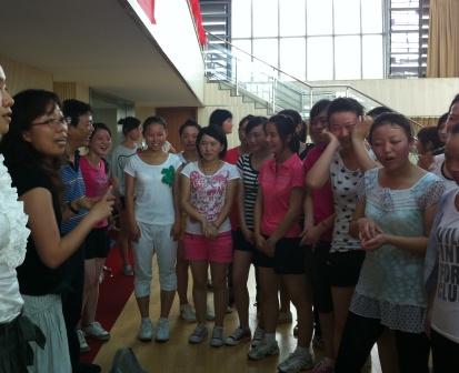 金书记对同学们过去两周的表现给予了很高评价:“这么热的天,大家满头汗水、满脸通红,很不容易,希望大家能坚持到最后,发扬志愿者不怕苦不怕累的精神。”随后,老师们为志愿者送上擦汗的毛巾及喝水的杯子。同学们受到极大鼓舞,在训练中更加认真卖力,伴随着欢快动感音乐,热情奔放地跳动起来,展现了“90”后的青春活力。
