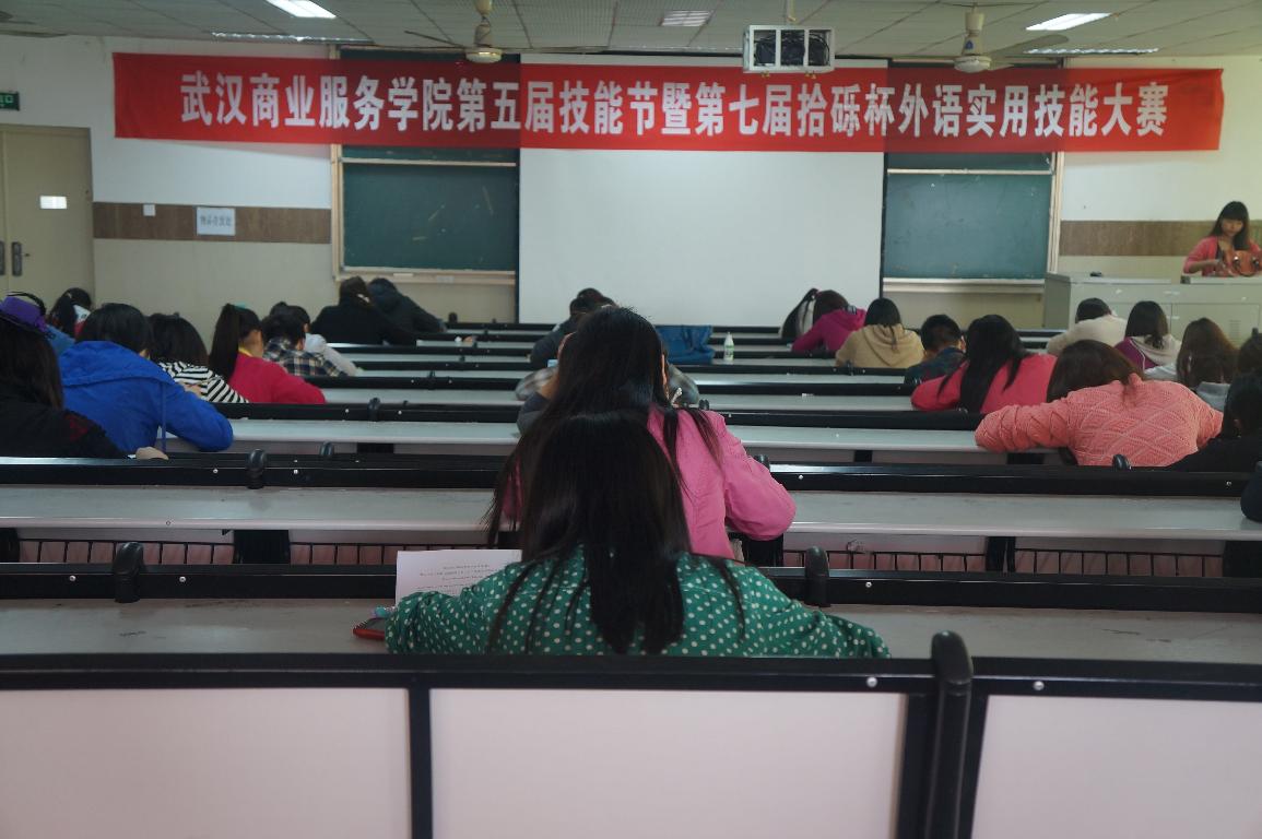4月24日中午12点30分,第五届技能节暨第七届拾砾杯外语实用技能大赛之商务信函写作大赛在北3—208开赛。
