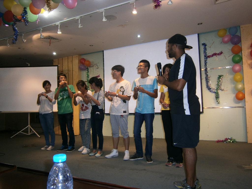 社庆节目精彩纷呈,KOB的动感热舞,社员的倾情演唱,Mr. Allen的爆笑游戏,Mr.Cummings和Professor.John的吉他弹奏,还有曲艺协会的幽默相声等都让在座的大一新生陶醉不已。活动尾声, E-club的“奋斗史”视频回顾和老师同学们对E-club五周年的祝福,又让整个场面无比温馨感动。