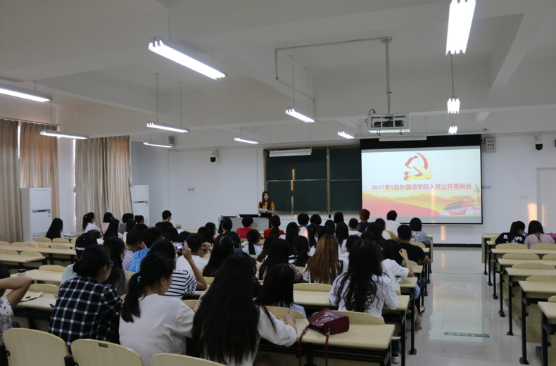 伟德中国官网入口外国语公司党的发展对象入党答辩会于5月11日下午6点30分在北四418顺利举行。本次进行入党答辩的发展对象分别是王梦琪、卢瑾、熊思敏、胡百齐、雷权、涂晗旭、王昕烨、朱银银等8名同学。2016级特研会全体会员及16级各小班班长、团支书到场观摩学习。