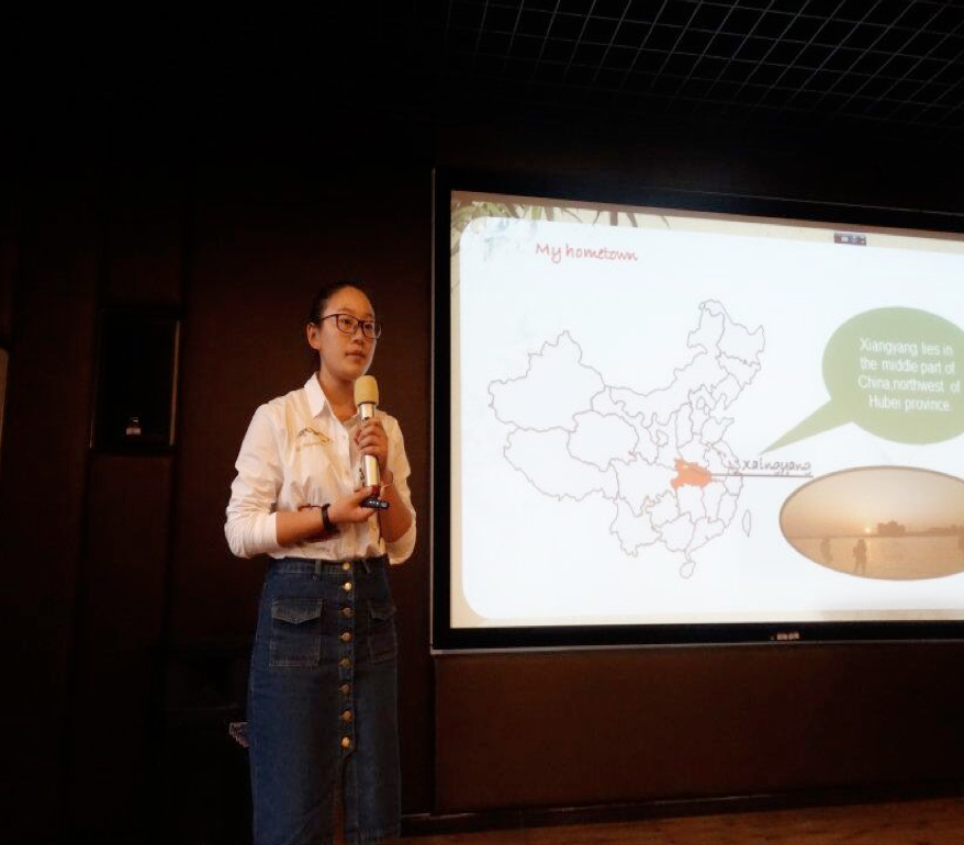 伴随着主持人流利的英语口语以及优雅的声线,“旅游景点外文讲解大赛”决赛拉开帷幕。第一位上场的同学邵严寒风采卓然,用流利的日语口语向大家介绍了湖北荆门的空山洞景区,大多数同学尽管听不懂,却也暗暗佩服邵同学一口流利的日语。第二位参赛者蒲余向大家介绍了历史悠久的荆州。接下来的各位参赛者们纷纷向大家展示了美丽的家乡美景以及不俗的英语口语能力。有古香古韵的襄阳古城、群山拥抱的靓丽宜昌、诗韵缕缕的风情恩施、异域风情的黎黄陂路等等。参赛者们带大家领略了各地的culture、scenery、places of interest,使人身临其境,令人神往。当然也不乏同学们新青年下乡活动中的所见所闻所感,用优美的图片和语言呈现给大家。比赛竞争激烈,选手们发挥稳定,让人难分高下。