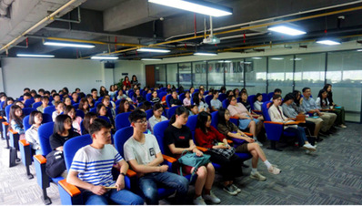 在互动环节,公司员工积极与企业工作人员展开互动,并就所关心和感兴趣的话题同该企业有关人员进行了深入探讨,例如,跨境电商行业对毕业生的综合能力要求、外语水平要求、跨境电商行业职业发展道路等。随后,张助理介绍了弗睿公司的发展历程、业务经营范围和未来发展愿景,邀请公司新入职员工分享职业心得体会。最后,张助理鼓励大家在学好英语的前提下要胸怀天下,及时关注国家的政策方针经济发展动态,并热情邀请在座的员工将来到弗睿公司实习或工作。