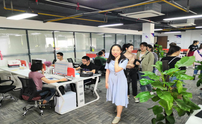 为了让员工能够近距离感受跨境电商企业工作氛围和工作环境,弗睿公司工作人员带领员工参观了弗睿公司不同楼层的办公室环境。参观过程中,同学们就弗睿公司业务范围、业务流程、外语语言要求、工作内容等方面的问题与该公司员工进行了交流和沟通。