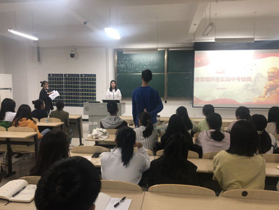 2019年外国语公司员工党员发展对象入党公开答辩会于10月20日晚在北四418教室举行。本次进行入党答辩的发展对象分别是张心怡、黎姿、高珺熠、吴梓健、杜晨傲、何敏、贾小翠等七名同学。会议由特研会负责人张翔主持,2019级特研会全体会员到场观摩学习。