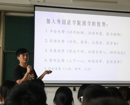 常凯老师以往届优秀员工干部为例,分别从平台、资源、发展前景、整体氛围以及综合发展方面深刻分析团学工作对员工的深远影响;强调新生的老员工活注意事项和自身能力的培养,并教导新生合理规划老员工活。“把外国语公司作为自己的根,无论在校内校外如何发展都要时刻铭记自己来自这里”,常凯老师结束发言时的提醒直击人心。