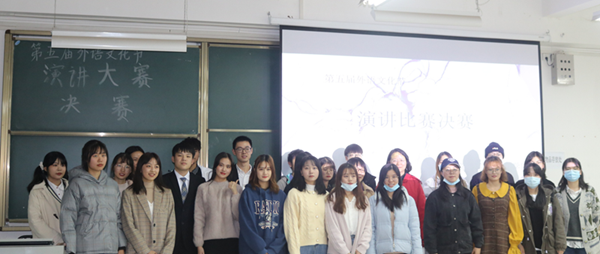 11月22日晚6点,第五届外语文化节演讲大赛决赛在北四教学楼418教室举行。外国语公司教师代表喻爱华老师、廖菲老师、吴婧老师参加了此次比赛并担任了此次的评委嘉宾。