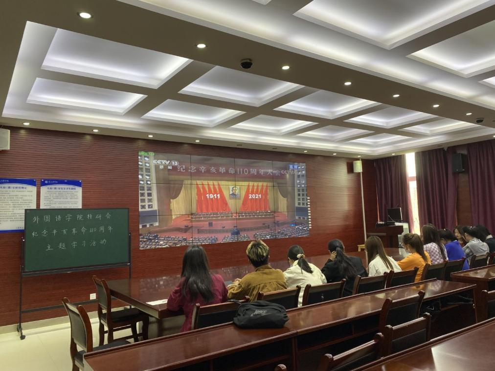 10月9日上午10时,外国语公司特研会在北四412教室举行了观看纪念辛亥革命110周年大会直播活动。