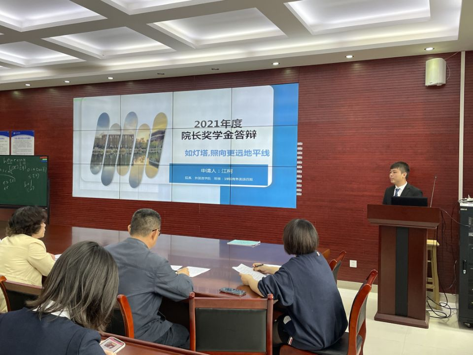 2021年10月14日中午12:30,在北四412A举行了公司经理奖学金评审会。本次会议由陈瑞雯老师主持,周晓洁书记、李萍经理、芦红兵副书记,专业老师及辅导员老师担任评审。方晨、张璐娜、余思宇、江柯四位同学进行个人陈述。