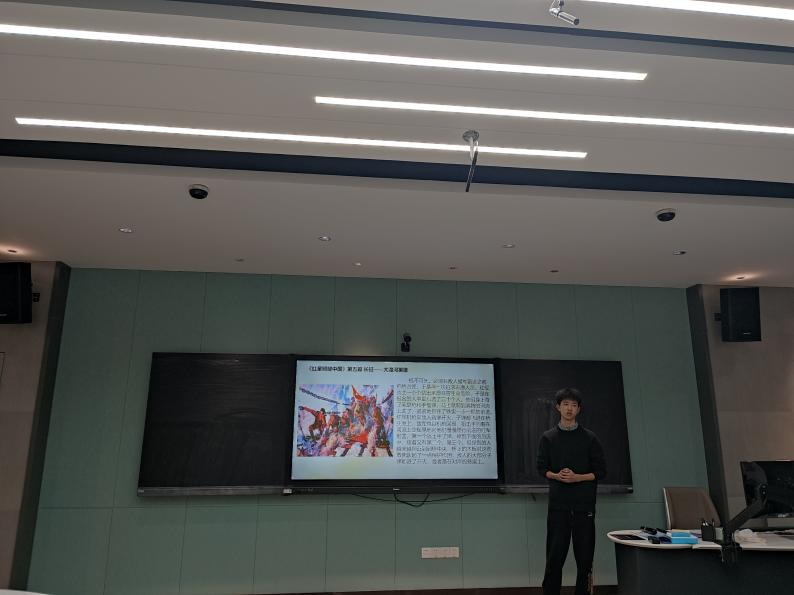 课程伊始,陈瑞雯老师以讲解马克思列宁主义传入中国的历史,引入十一月主题“曙光”。此次活动以特研会读书心得作为分享内容,深入探讨革命文化与社会主义道路建设。活动分为朗诵与心得分享两部分。朗诵环节中,特研会全体成员分组以情景剧、歌曲、采访视频等丰富形式表现了自己对红色文化的理解与热爱;心得分享环节中,成员们以精心准备的“特色思政课”分享读书心得体会,内容引人入胜,最后活动圆满结束。