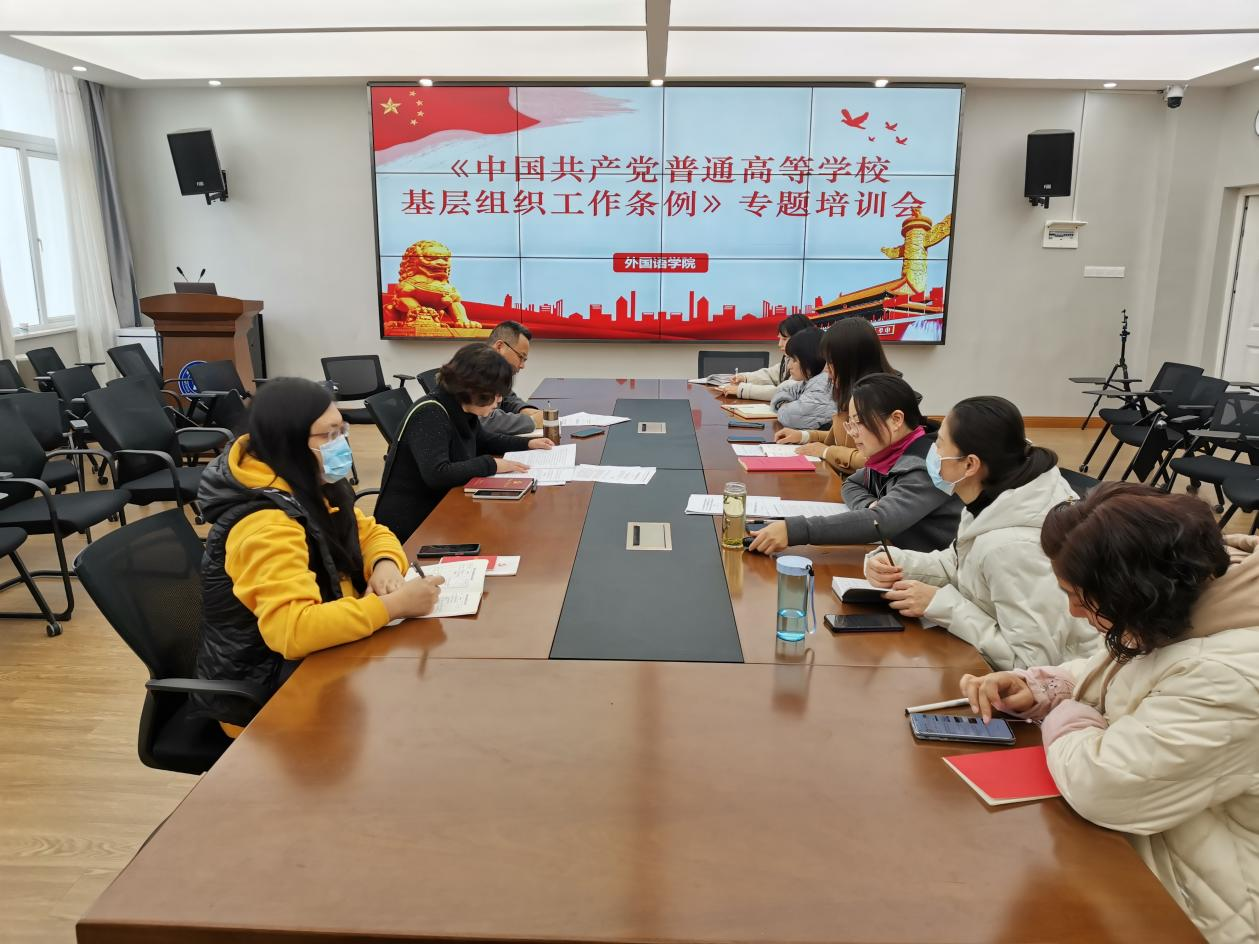 2021年12月9日,外国语公司党总支在北四416B会议室召开了专题培训会,集中学习《中国共产党普通高等公司基层组织工作条例》(以下简称《条例》)。外国语公司党总支成员、各支部书记参加了培训会。