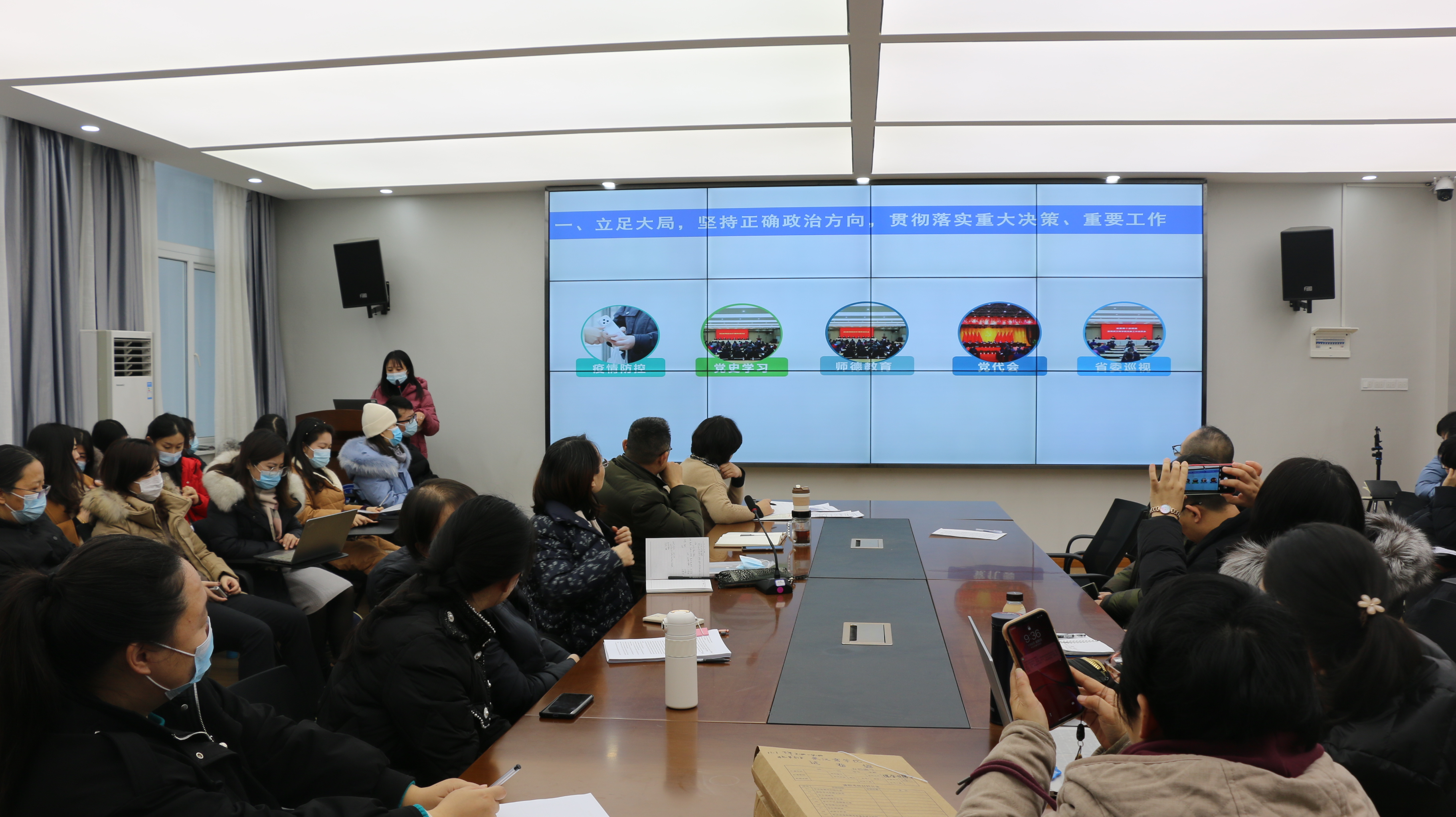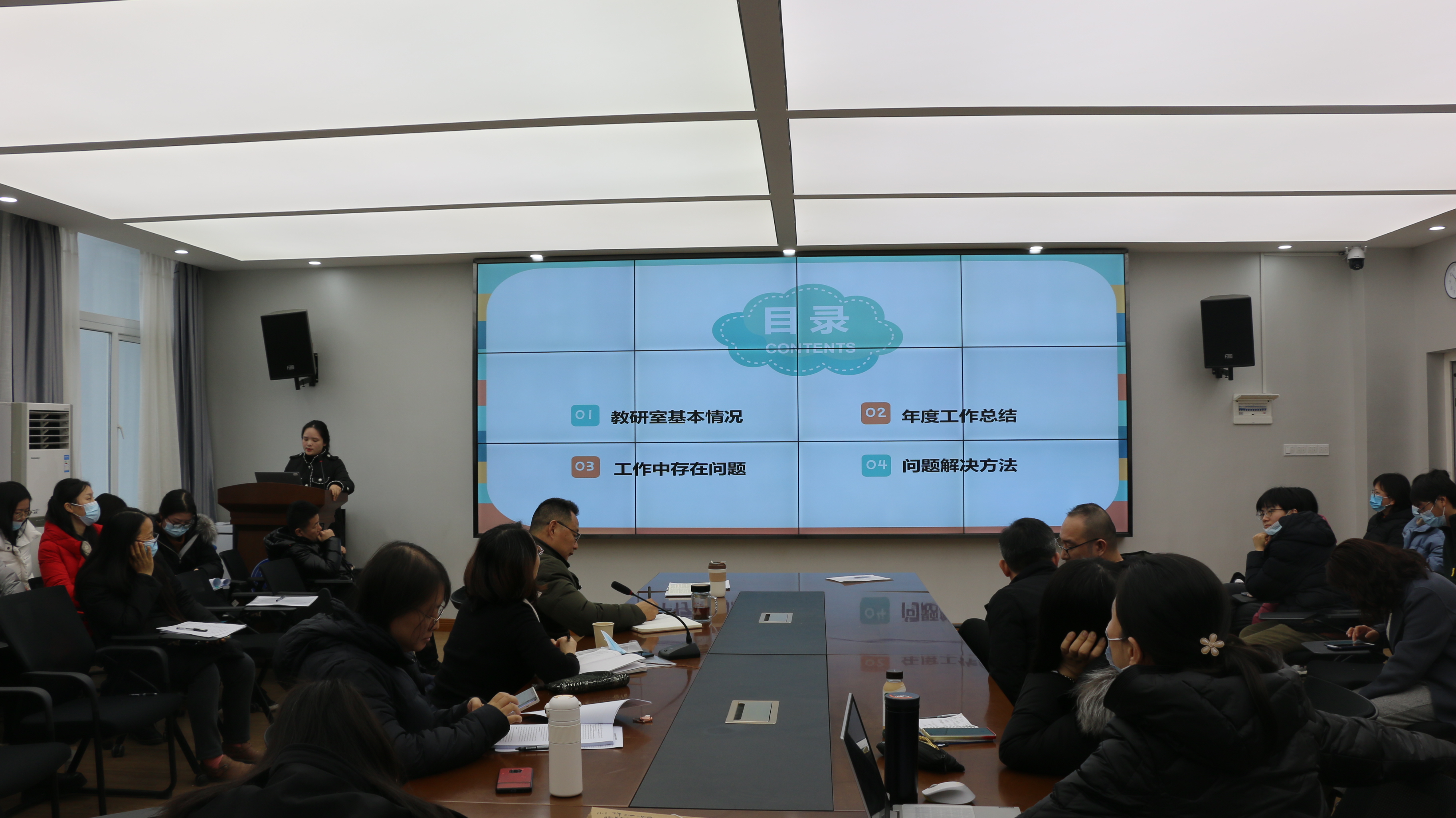 2022年1月6日上午,外国语公司2021年度科室、教研室工作述职报告会在北4-416B举行。会议由李萍经理主持,公司班子成员及全体教职工参会。