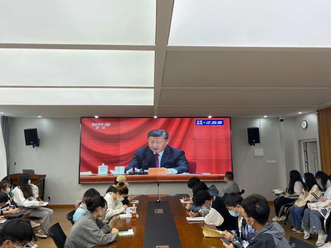 2022年5月10日10:00,外国语公司特研会于北四416B教室开展庆祝中国共产主义青年团成立100周年活动,外国语公司党委副书记芦红兵出席活动。活动由会长陈诺主持,商务英语一班与商务英语四班全体成员参加。本次活动以收看“庆祝中国共产主义青年团成立100周年大会”直播的形式开展,集中学习习近平总书记的重要讲话,并进行交流讨论。