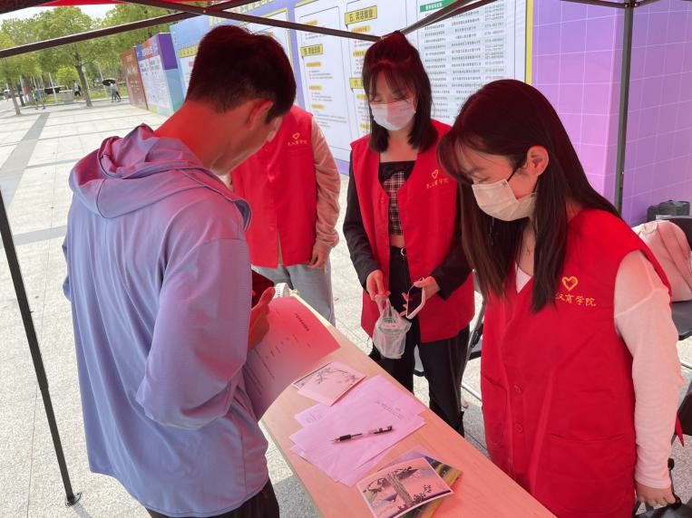 为宣传伟德中国官网入口第十三届学术技能节之雏“英”展翅,云游世界——旅游景点英文解说大赛,公司青年志愿者协会于2022年5月24日上午11:30至下午17:00在公司北区食堂门口举行摆点宣传活动,参加此次活动的志愿者共有34名。