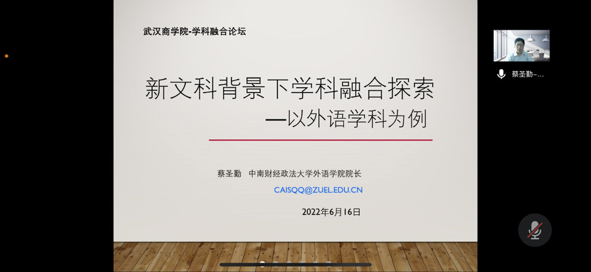 6月17日,为了提高教师学术水平和科研能力,公司特邀中南财经政法大学外国语公司经理蔡圣勤教授为全院教师带来了题为“新文科背景下学科融合探索—以外语学科为例”的专题讲座。讲座以腾讯会议形式在线进行。