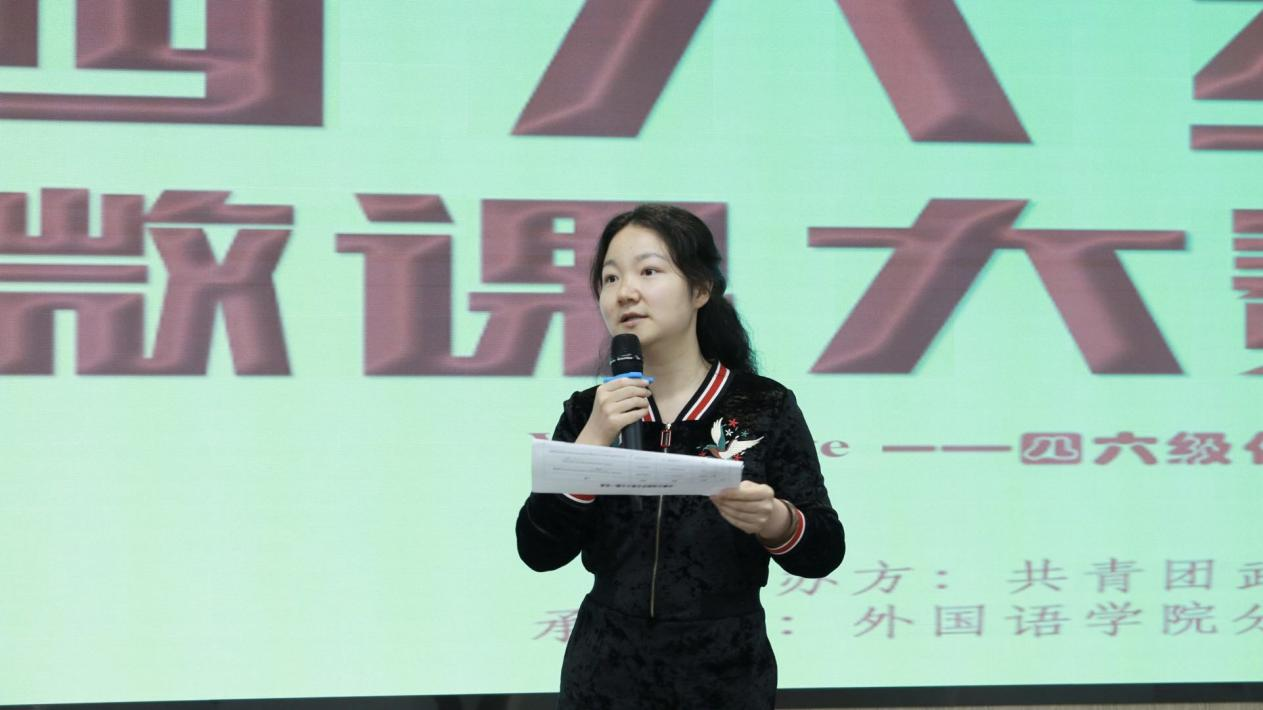 为推动公司学风建设,营造良好的外语学习环境,培养广大同学外语学习兴趣,由外国语公司承办的第十四届学术技能节之“词”之以恒,“语”你同行四六级微课大赛决赛于5月16日18:30晚在北四302举行。胡荃、唐金凤、徐喆担任此次评委老师。
