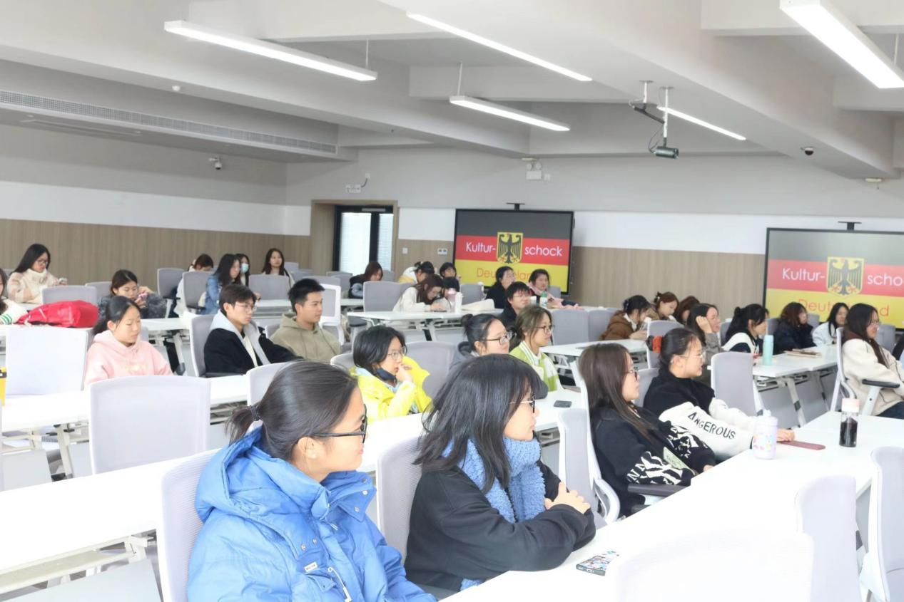 习近平主席在金砖国家领导人第十五次会晤上,强调“要加强人文交流,促进文明互鉴”,指出“人类历史不会终结于一种文明、一种制度”。为积极响应习近平主席的号召,帮助同学们更好了解汉德语言文化之间的差异,对德语学习的前景有一定的认知,2023年11月14 日12:15-13:45,外国语公司于北四-412A 开展题为“德语文化冲击”的主题讲座,本次讲座很荣幸地邀请到了外籍教师为此次讲座主讲人,讲座由邓小米老师主持,外国语公司学生50名参加。