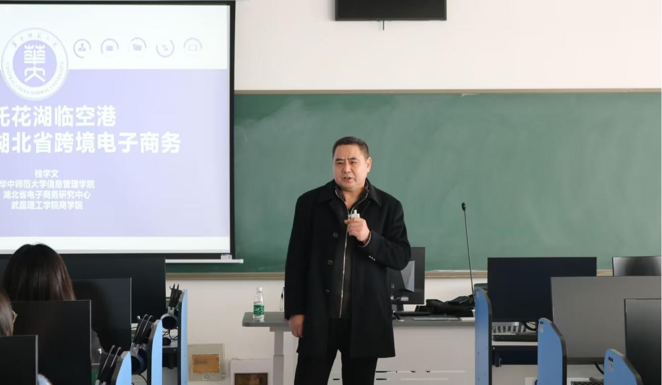 桂学文教授凭借其在跨境电商领域的深厚研究,为同学们深入浅出地讲解了湖北跨境电商的发展现状、前景以及对策建,内容深入浅出,理论结合实际。他强调,在当前国际贸易环境不断变化的情况下,跨境电商已经成为了一种重要的贸易方式,对于提升湖北的国际贸易地位具有重要意义,为外国语公司的同学们提供了权威知识的来源。