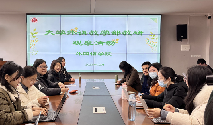 为提升基层教学组织教研活动质量、教师教学水平和专业素养,2023年12月27日上午,外国语公司组织了大学外语教学部教研公开观摩学习活动,公司经理、副经理、各系部负责人、公司督导及教师代表齐聚416B会议室。外国语公司大学外语教学部主任金俐主持活动。