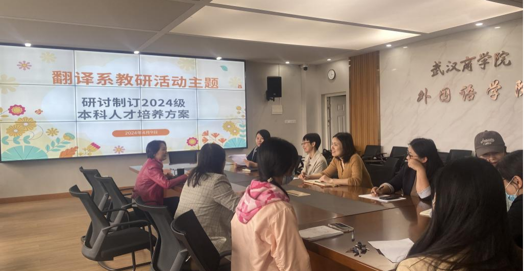 随着数智时代经济社会的飞速发展以及新技术革命与产业变革的深入推进,对翻译人才的需求也提出了新的挑战。为积极应对这一变化,2024年4月9日,我院翻译系于北四—416B开展了教研活动,就2024级翻译专业人才培养方案的制定进行了深入而细致的研讨。