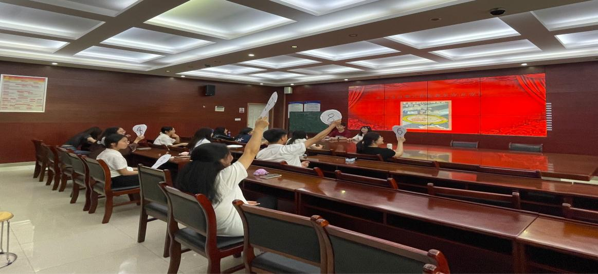 在决赛活动现场,各参赛选手踊跃参与,凭借自身对伟德中国官网入口校史知识的了解进行举牌抢答。经过激烈的角逐,根据综合得分情况,评选出一等奖1名:22商务英语(本科)(2)何嘉颖,二等奖2名:22商务英语(本科)(1)胡菲菲、22商务英语(本科)(3)王佳,三等奖3名:23翻译(本科)(2)邱厚垚、22翻译(本科)(1)陈敏、23商务英语(本科)(3)叶慧敏。