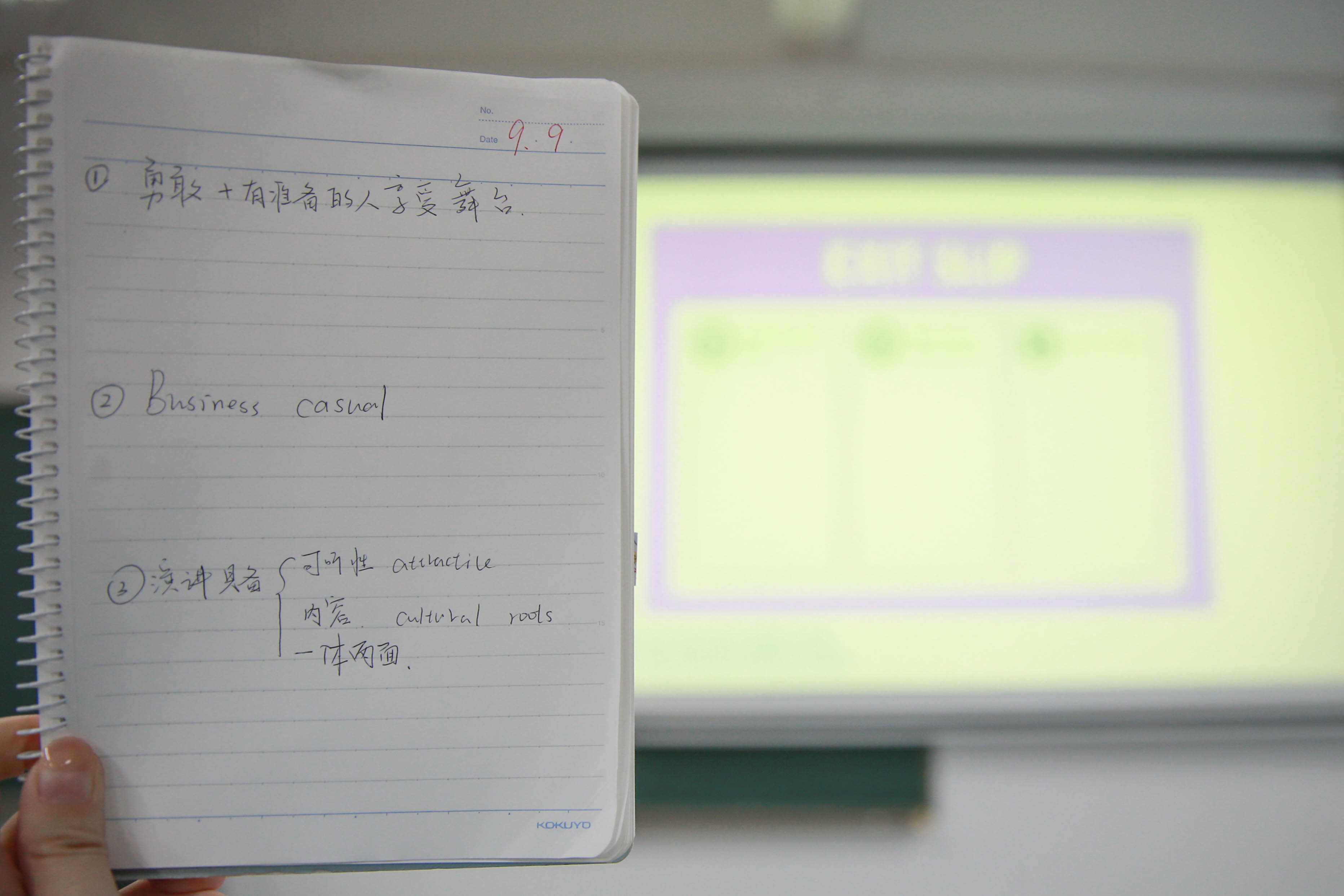 据了解,“出门票”借鉴了321课堂反馈课堂管理技巧,也称为出门通行证(EXIT TICKET),是一种简单快速的课堂评估方法,有助于老师快速评估员工是否掌握了当课所学的核心概念或知识点。3代表今天学到的三个知识,2代表两件我觉得有趣的事情,1则是一个我仍然存疑的问题。胡荃老师根据教学实际情况选择将“3”应用到课堂,形成了“出门票”。除了在英语演讲课程中应用出门票,胡荃还将其应用到综合英语、英语语音等其他科目中。