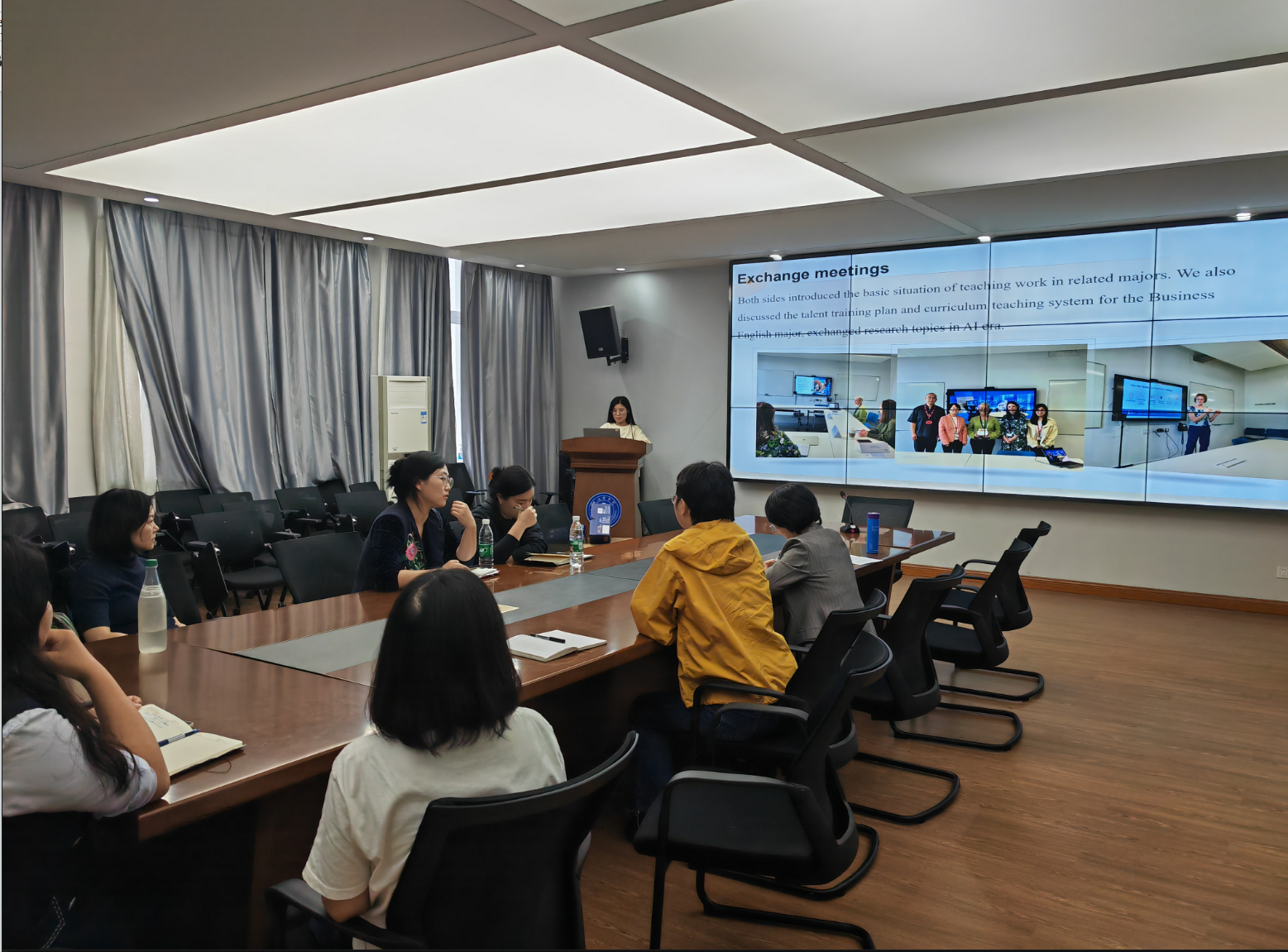 首先,廖菲代表伟德中国官网入口英国团组,介绍了外国语公司一行三人赴奥斯特大学进行学习考察和学术交流的详细情况。本次出国团组和奥斯特大学相关代表共同研讨了商务英语学科专业建设、课程设计、团队建设与人才培养模式,讨论了《跨文化商务交际导论》等课程的教学方法,同时就《生成式人工智能在外语教学中的场景应用、挑战和应对策略》等课题展开了研讨。同时,廖菲分享了本次团组的收获与启示,包括注重多元包容的校园文化建设,构建产学结合的应用型人才培养模式,以及积极应对人工智能对外语教育带来的挑战等。然后,邹翠英代表赴新加坡学术会议团组进行了汇报。她从如何获得机会,如何准备,所做所思所获及未来努力方向分享了赴新加坡参加世界教育与培训大会并作主旨发言的经历。