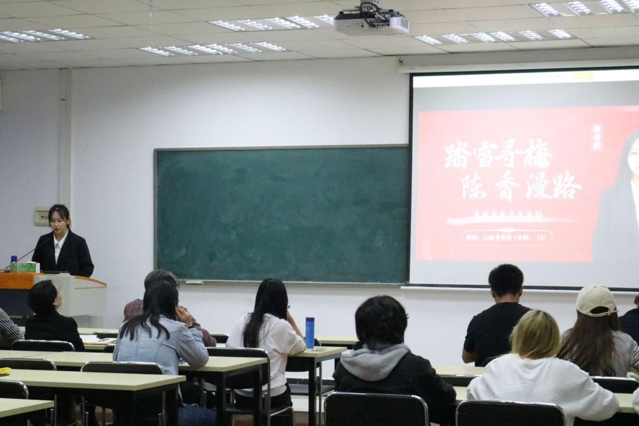 21级翻译一班张思怡“奋发向上,‘牛’劲十足”为主题,从忠诚担当、精益求精、工作认真、多元发展四个方面表明自己要做坚定信仰的“铁牛”、学无止境“读书牛”、为民服务“孺子牛”、艰苦奋斗“老黄牛”。21级商务英语三班王景涵以“登山不以艰险而止,则必臻乎峻岭矣”为主题,从政治素养、专业学习、员工工作、社会实践四个方面表明自己不负青春,不负韶华的责任与担当。22级商务英语四班唐安平以“勇毅笃行,长风万里”为主题,从自我介绍、思想方面、学习方面、实践方面表达了自己笃志前行,虽远必达的决心与信念。22级商务英语四班刘玉薪以“逐梦薪生,遇笔生花”为主题,从政治理想、学术成就、创业创新、志愿服务四个方面分享自己践行“商道惟诚,知行致远”的成长和收获。22级商务英语三班王佳从思想篇、学习篇、竞赛篇、实践篇分享自己“知不足而奋进,望远山而前行”的人生宗旨。22级商务英语四班何灵依以“从0到1向阳而生”为主题,从学业、思想、技能、实践四个方面介绍自己从0到1的勇气与决心。22级商务英语三班陈香萍以“踏雪寻梅,陈香漫路”为主题,从寻梅、踏雪、沉香、漫步四个方面表明自己创新、进取、求实、为实现自我价值和社会价值而奋斗的精神。经过激烈角逐与严谨评审,最终决定推选何灵依、陈香萍、刘玉薪、唐安平为本次市政府奖学金推荐对象。