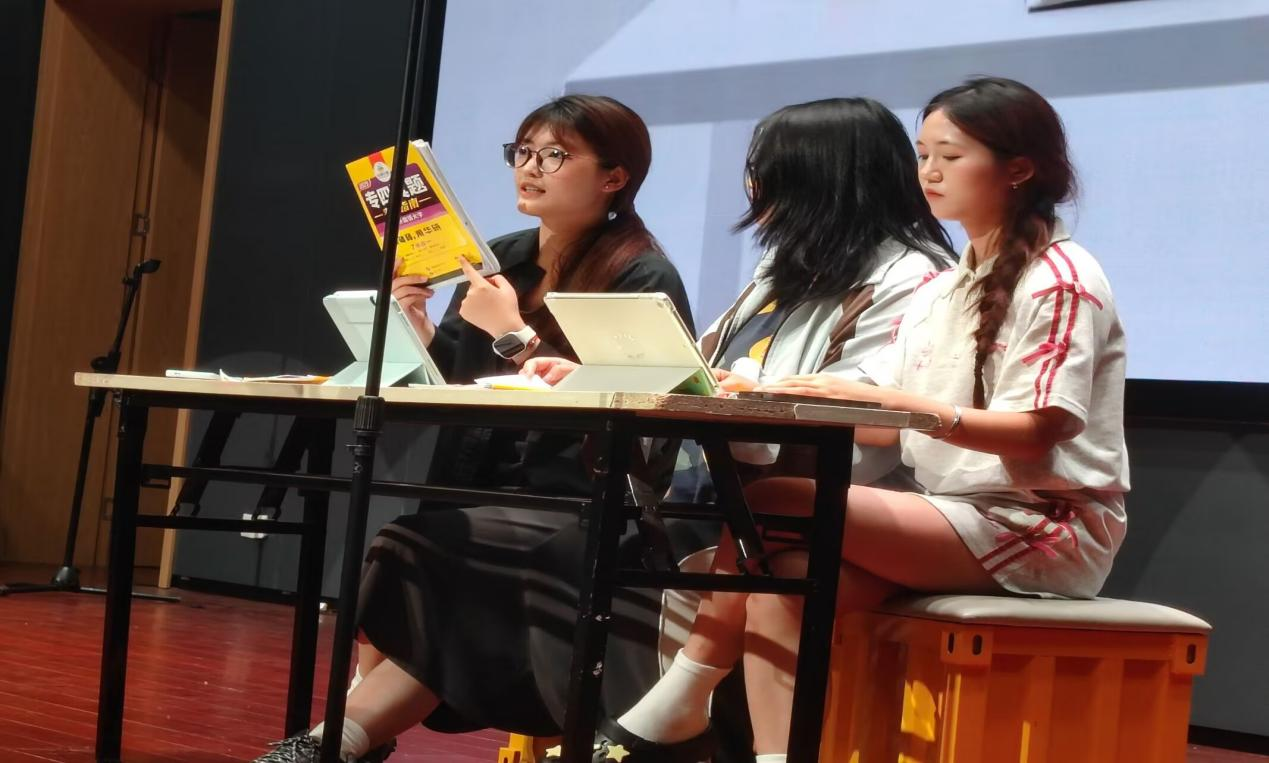 大赛中,各参赛团队紧扣直播主题,以多元创意和专业素养展现了英语直播的魅力。冠军团队Spark Showcase聚焦“华研专四真题书”,采用三人英文互动直播的创新模式。团队成员——2023级商务英语专业的王欣怡、褚旎珂、龙思彤配合默契,对书籍核心内容进行了深入解析,巧妙运用商务英语营销话术,并通过模拟真实互动场景,全流程还原了跨境电商直播的实战环节,为观众带来沉浸式体验。